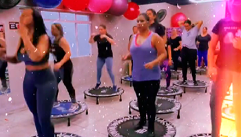 Aulas dinâmicas em trampolim individual. Trabalha pernas, glúteos e condicionamento cardiovascular com baixo impacto nas articulações.